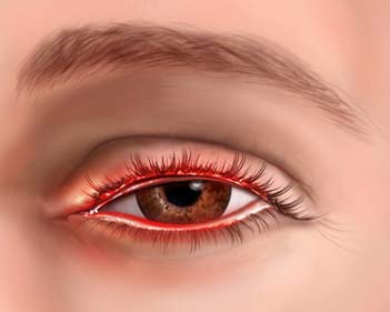 Ardor, dolor, picazón, edema de bordes palpebrales, sensación de arenilla, costras en la base de las pestañas.